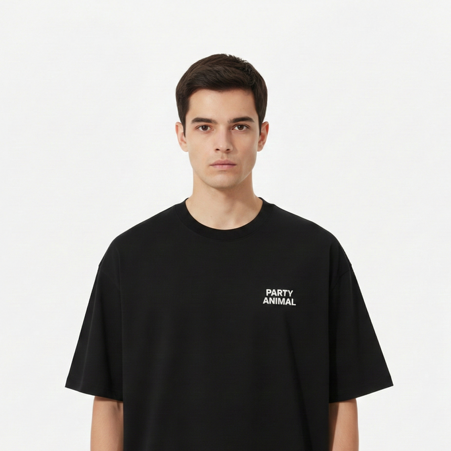 Own the night without saying a word. The Party Monster tee is the ultimate uniform for the after-hours crowd. Cut with a generous, boxy fit and dropped shoulders, this shirt delivers that perfect effortless drape.